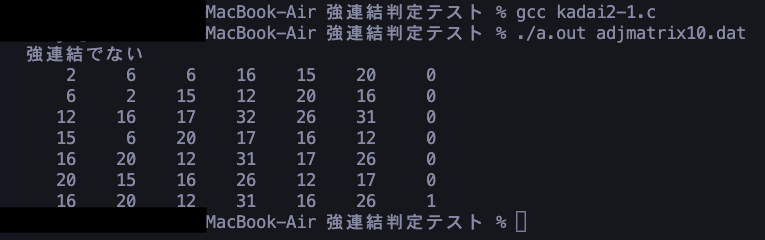 黒塗りで見にくくなっていますが、しっかり「強連結でない」と出力されています。