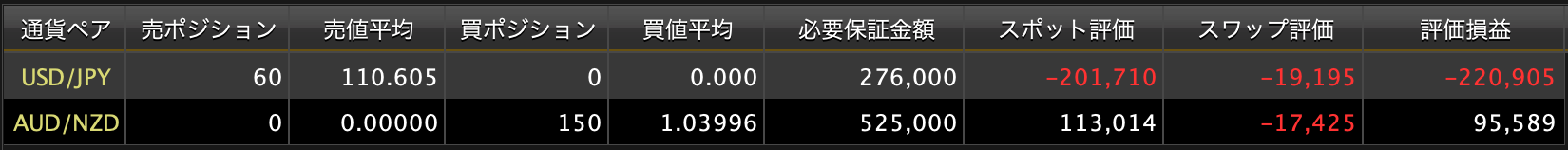 相変わらずマイナススワップが痛いですね。わかっててこのポジ持ったんですけど。