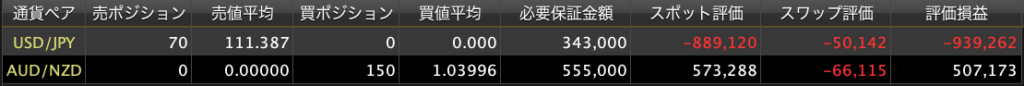 長く記事更新期間を空けてしまいましたが、前回と今現在のポジションの違いは上に書いたドル円1万通貨のショートポジだけです。