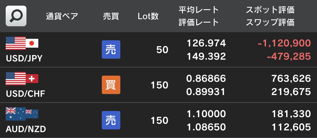 ポジション的にはマイナススワップ分だけ損が膨らんだ形になります。
