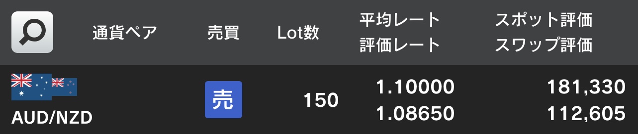 ・ADU/NZD 売 15万通貨 @1.10000 (評価損益 293,935円)