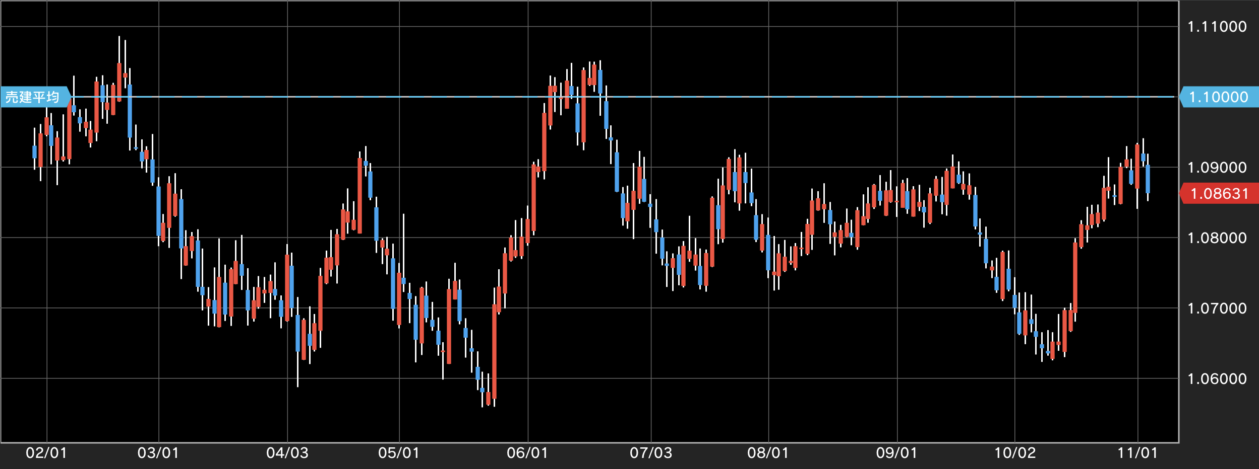 上に表示しているチャートは週末に撮ったものなので、11月3日までのローソク足まで含まれています。