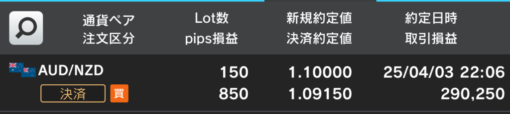 まずは利確したポジションから。